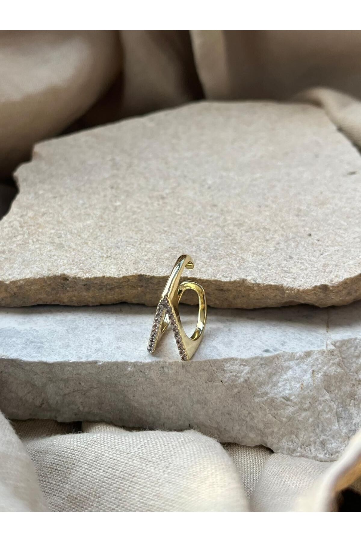 nunu takı Ring V Pattern with Stone