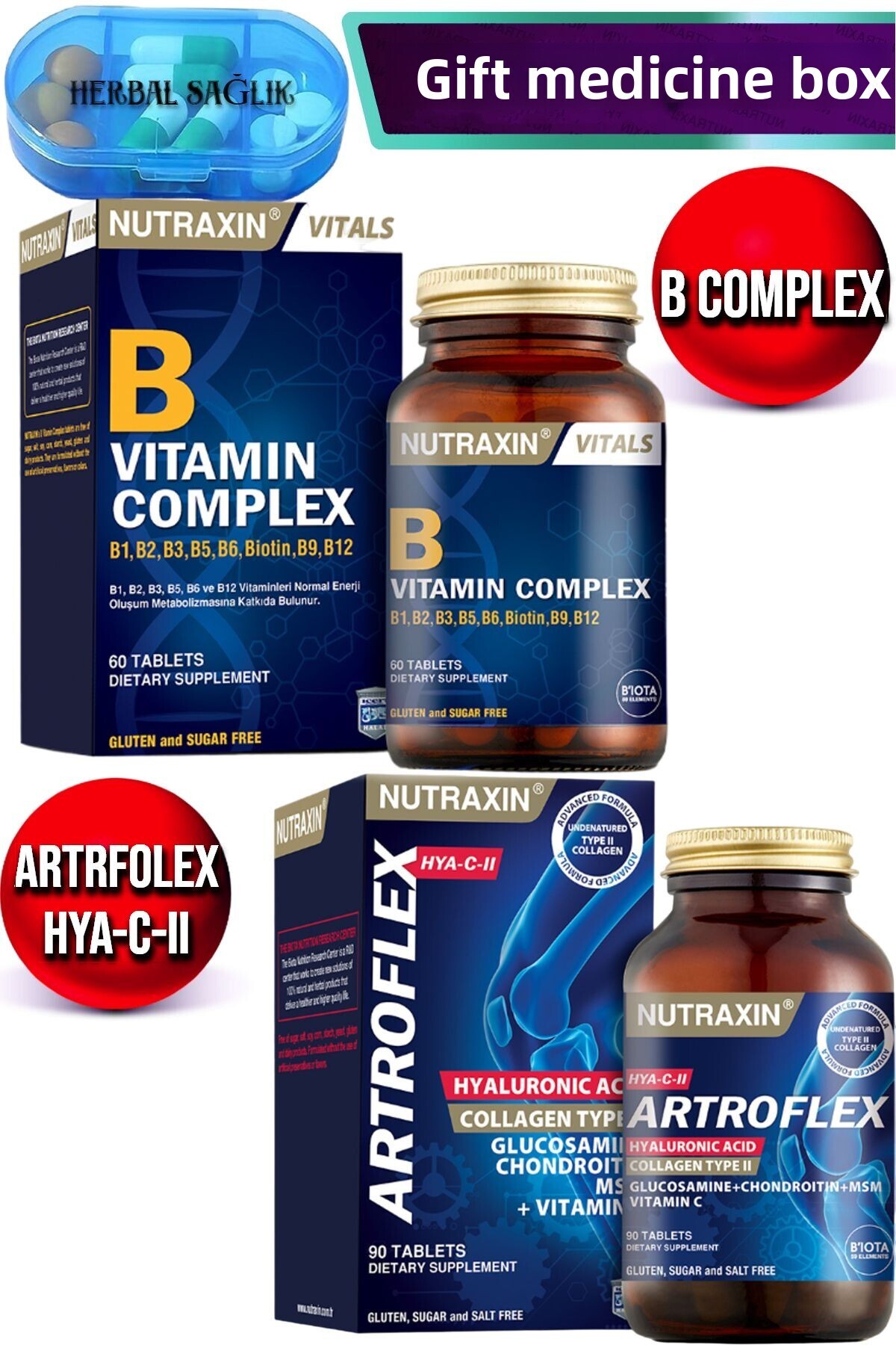 Nutraxin Vitamin B Complex and Nutraxin Artroflex Hya-C-Ii - 60 and 90 Tablets features