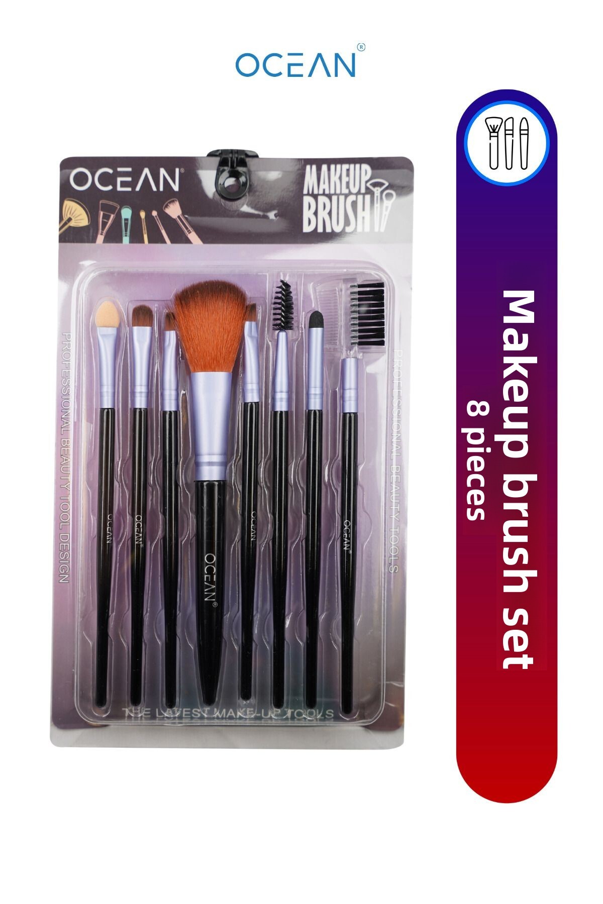 Ocean 8 Piece Basic Makeup Brush Set - Purple features