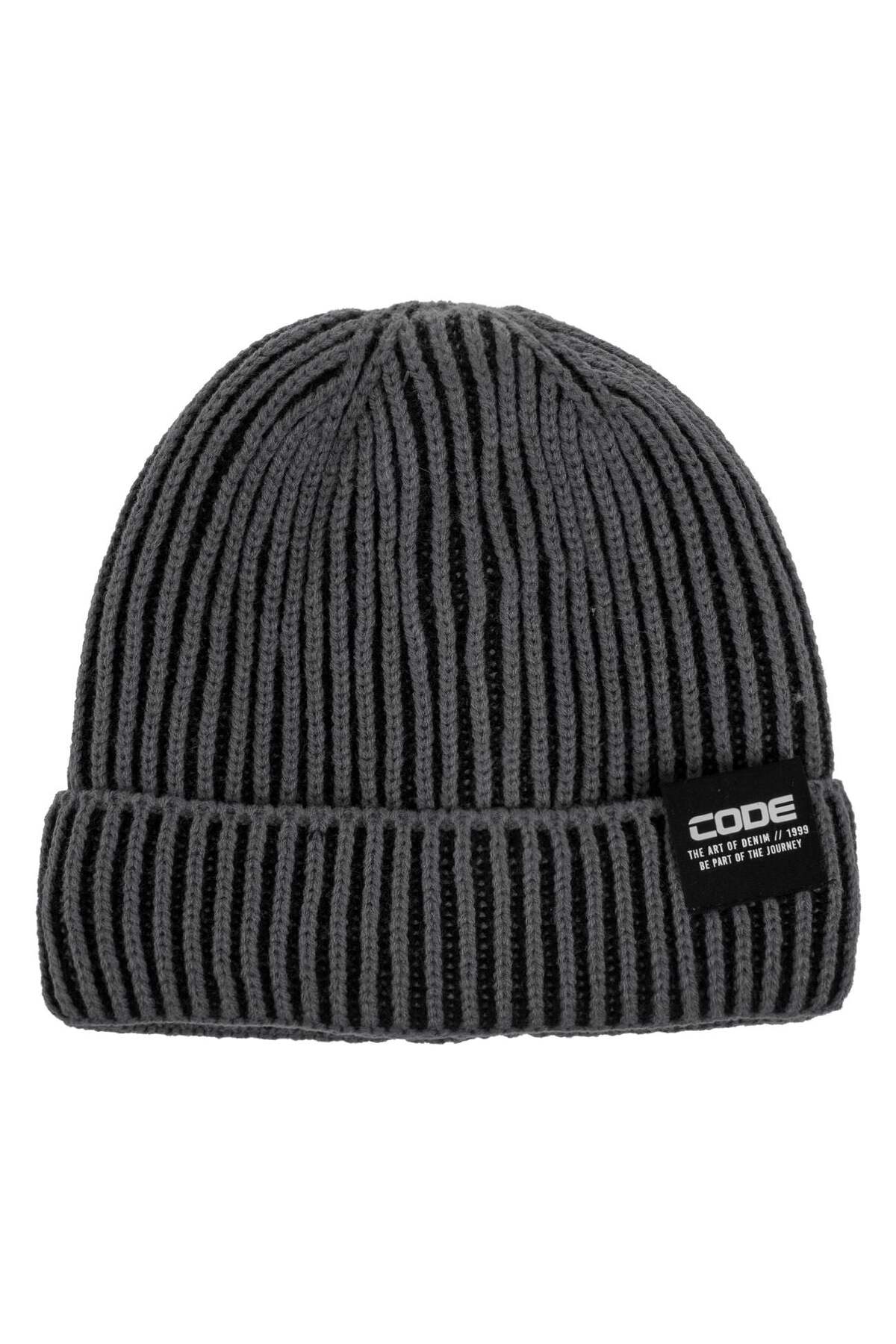 OEM Black Grey Knitted Beanie with Fleece Lining & "Code" Patch features