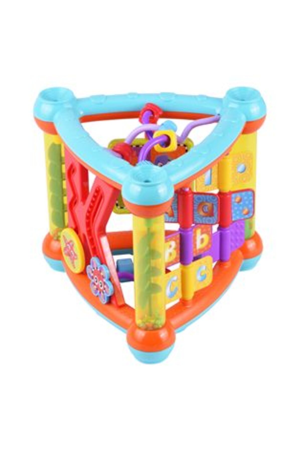 rotating mirror; 6 rotating sections; bead maze; melodies; yellow tube