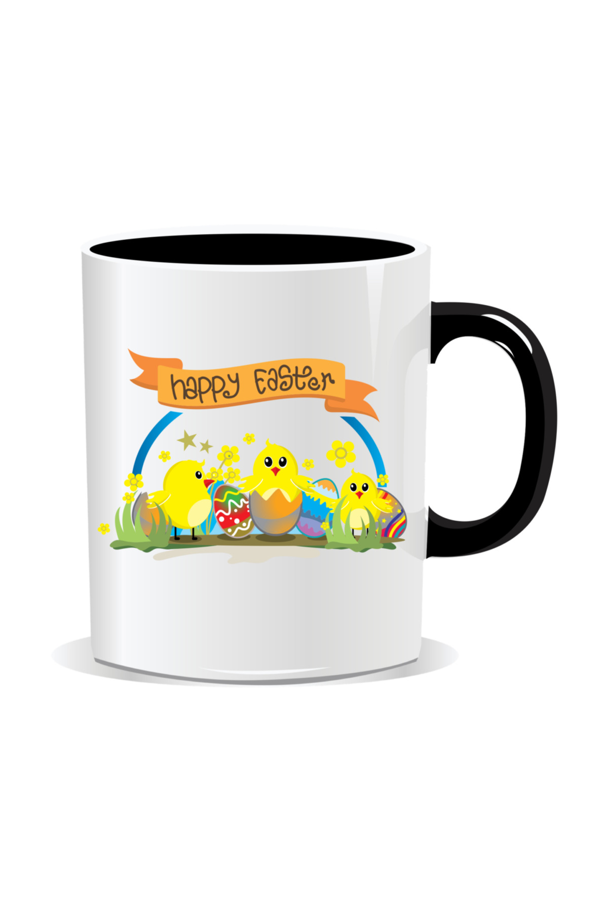 OEM Personalized Easter mug, Happy Easter with chicken - Black interior features