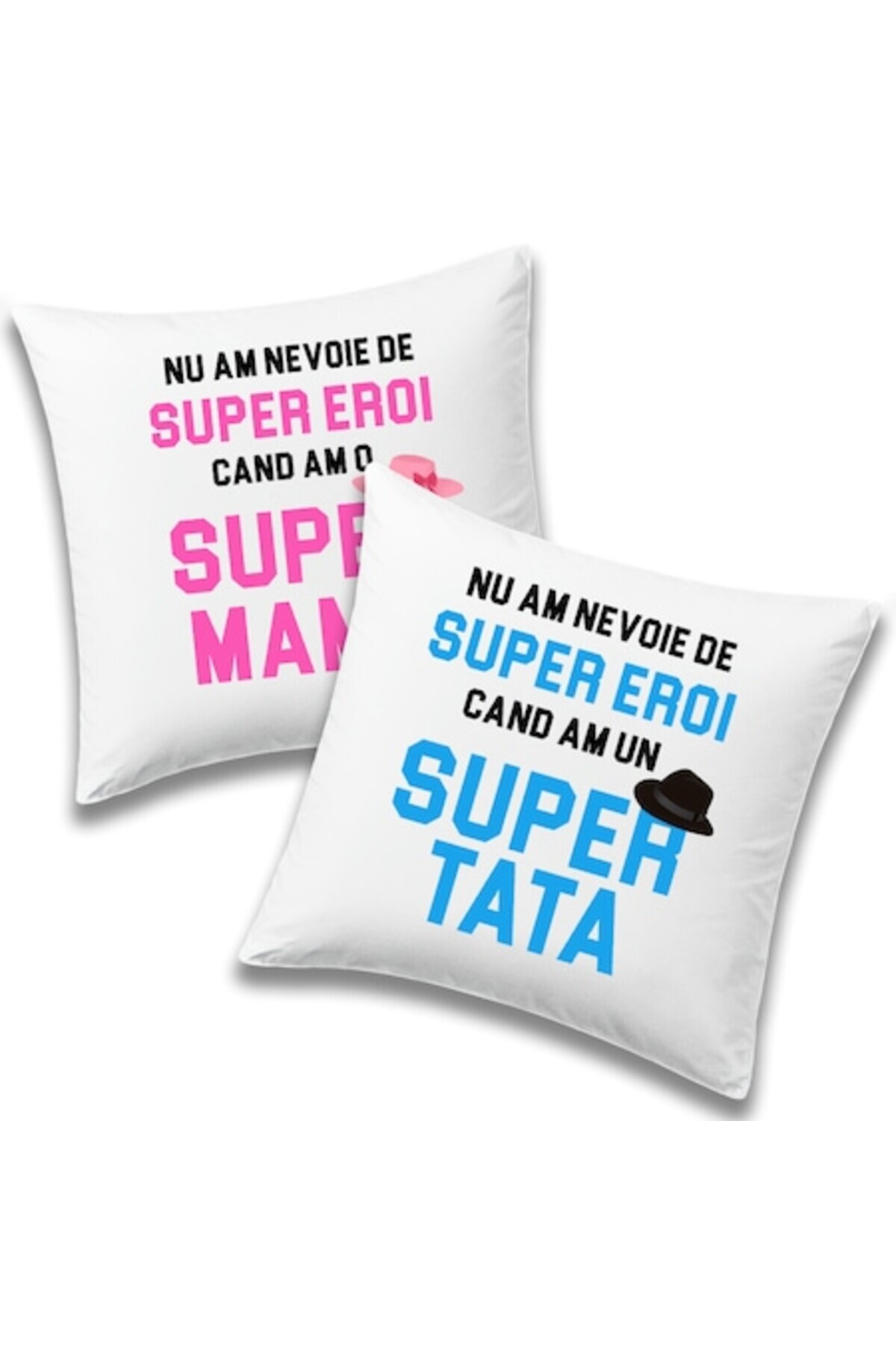 OEM Set 2 personalized pillows for Parents with message:"I don't need superheroes when I have a super da features