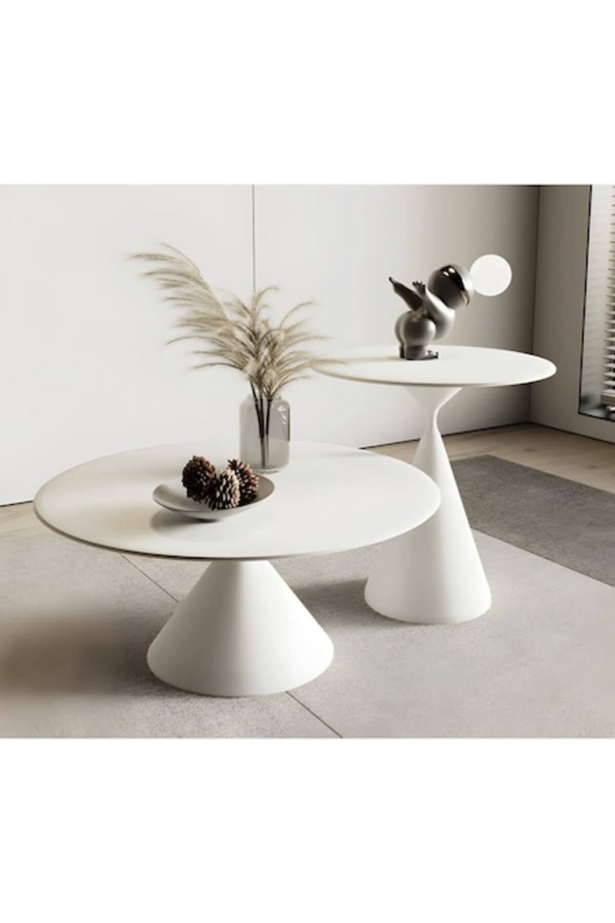 OEM Set of 2 modern round coffee tables with conical base, minimalist design, diameters 70 & 50 cm features