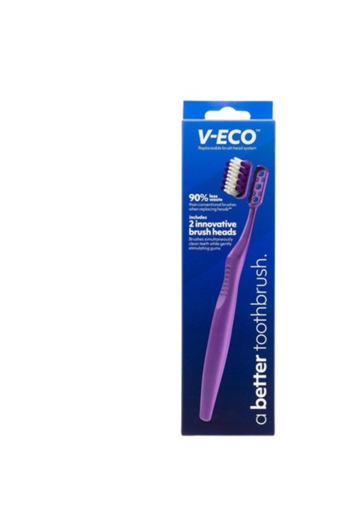 OEM V-toothbrush, purple, replaceable brush head and protective case features