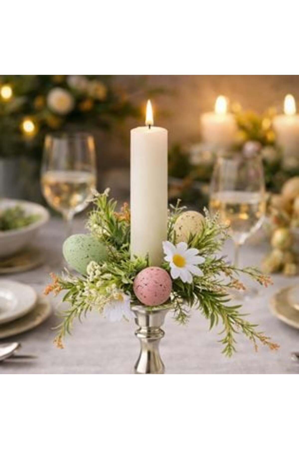 OEM White Easter Candle Ring 3 Eggs 2.5 CM features