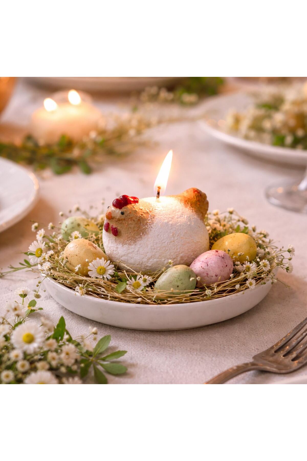 OEM White Hen Shaped Candle Ø7x5cm features