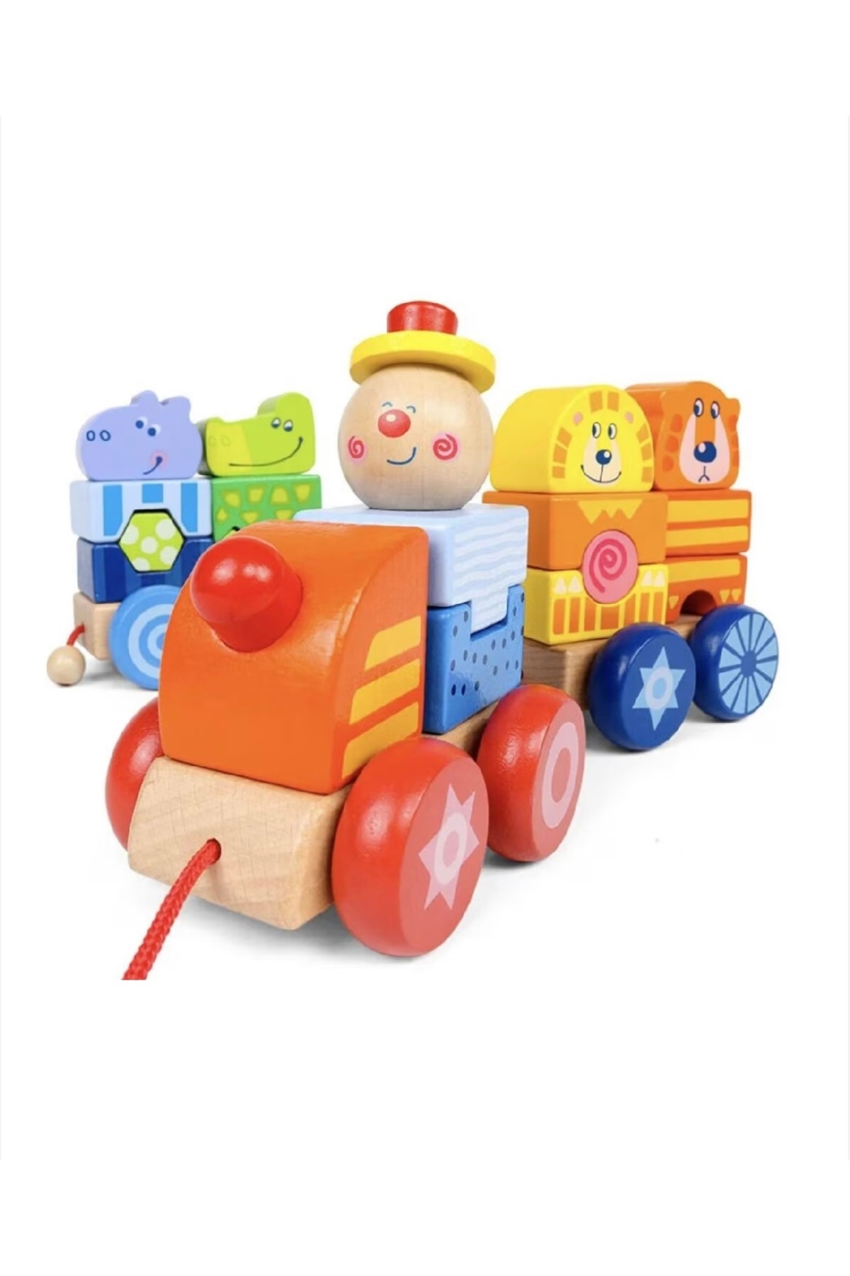 OEM Wooden Pull-String Train Toy, Circus Animals, Multicolor features