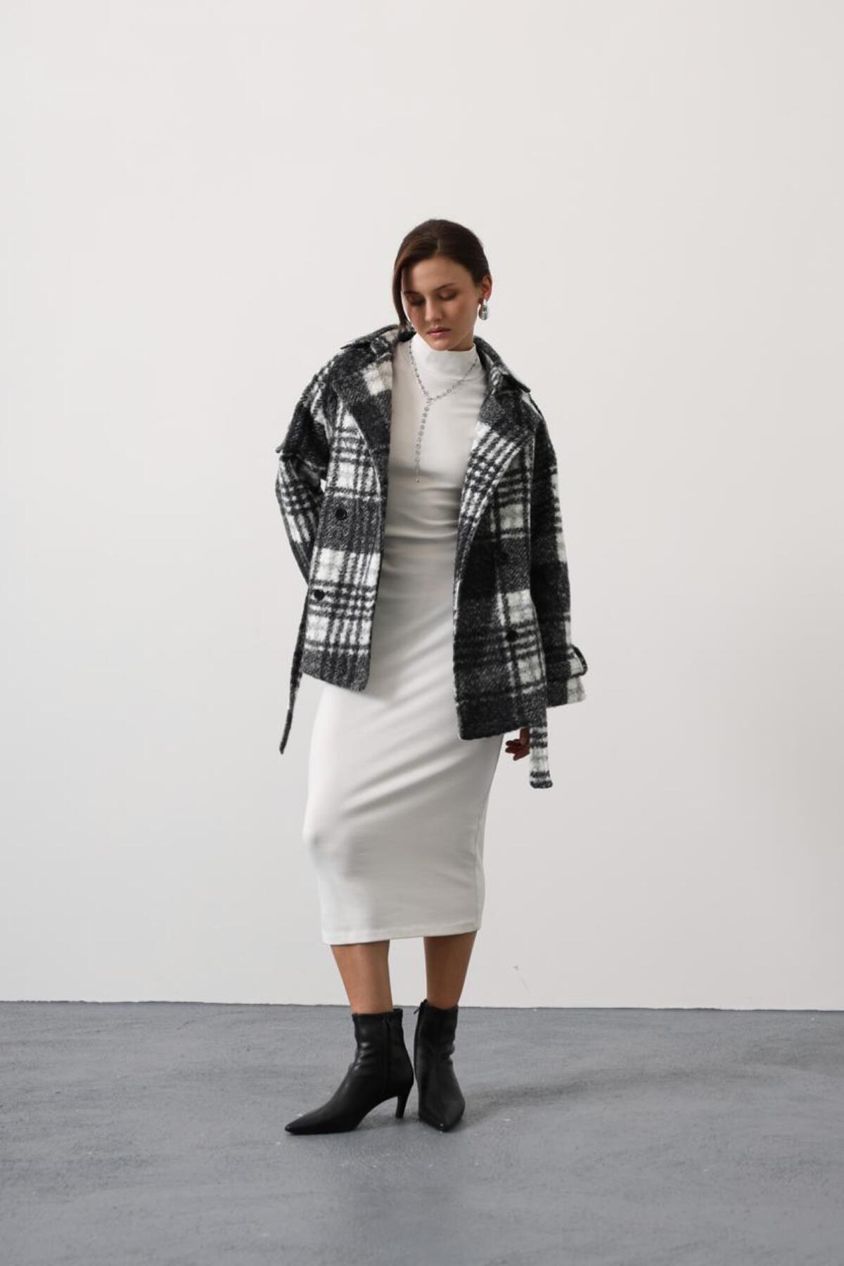 Opera Plaid Double Breasted Coat features