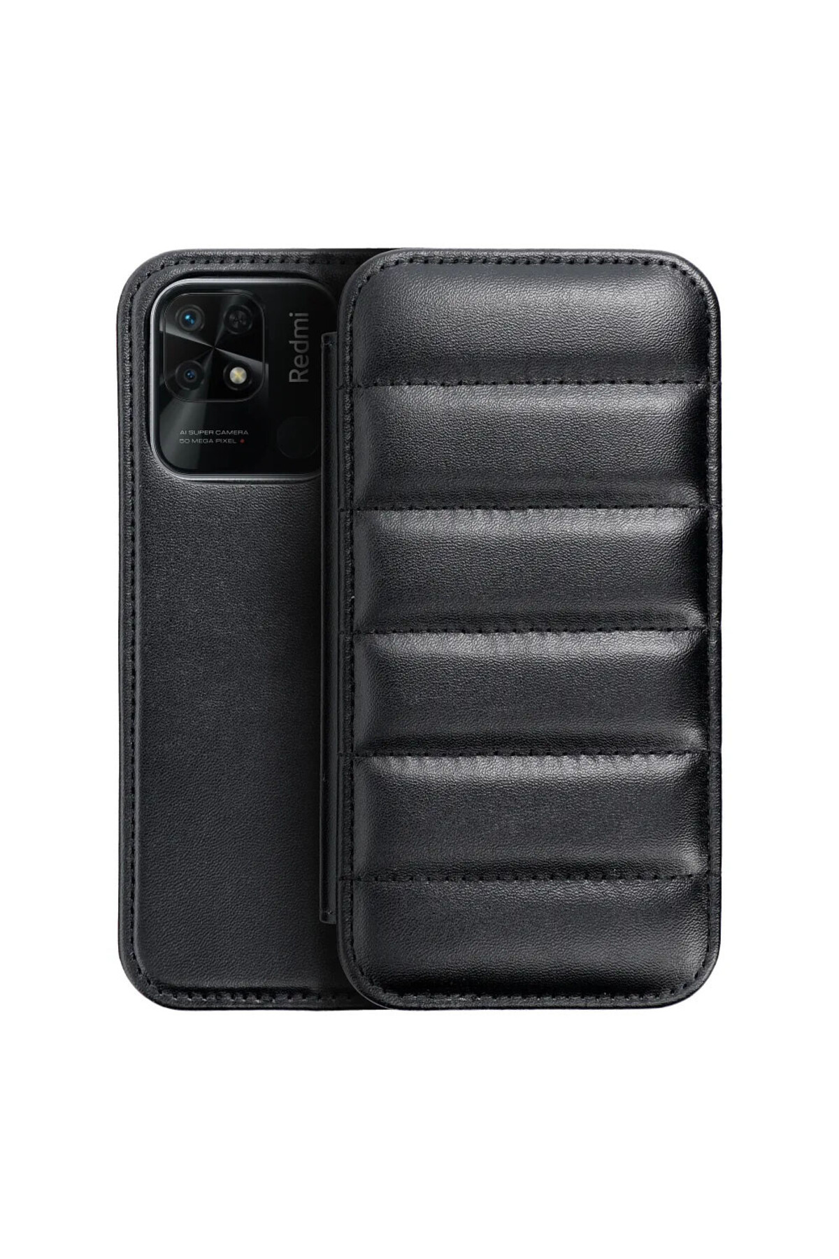 Optim Solution Flip Puffer Case for Xiaomi Redmi 10C, Stand Function, Black