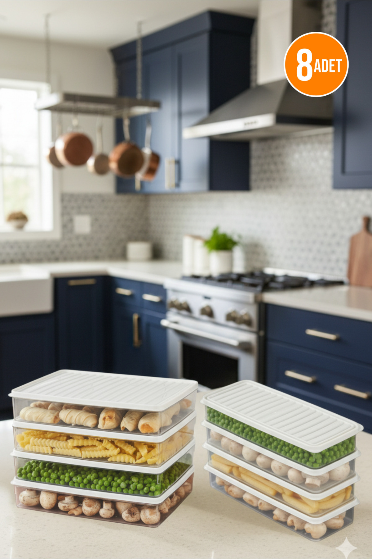 Orvila 8-Piece Transparent Storage Container Set Suitable for Refrigerator Freezer Organizer Set 4X2400 ml - 4X1200 ml features