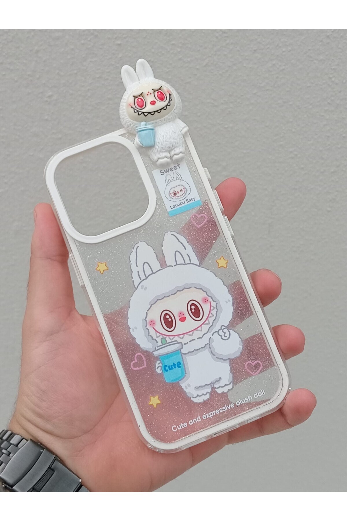 OSG iPhone 16 Pro Max Compatible Labb-Themed Glitter Protective Phone Case with 3D Characters on It features