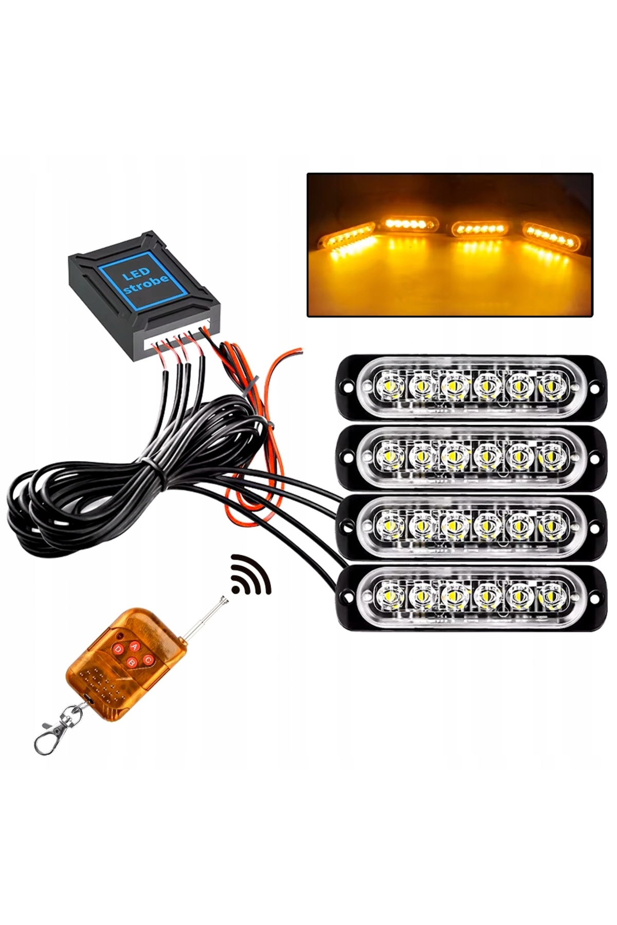Other 4x LED ORANGE FLASH WARNING LAMP REMOTE CONTROL STROBE PROGRAMS