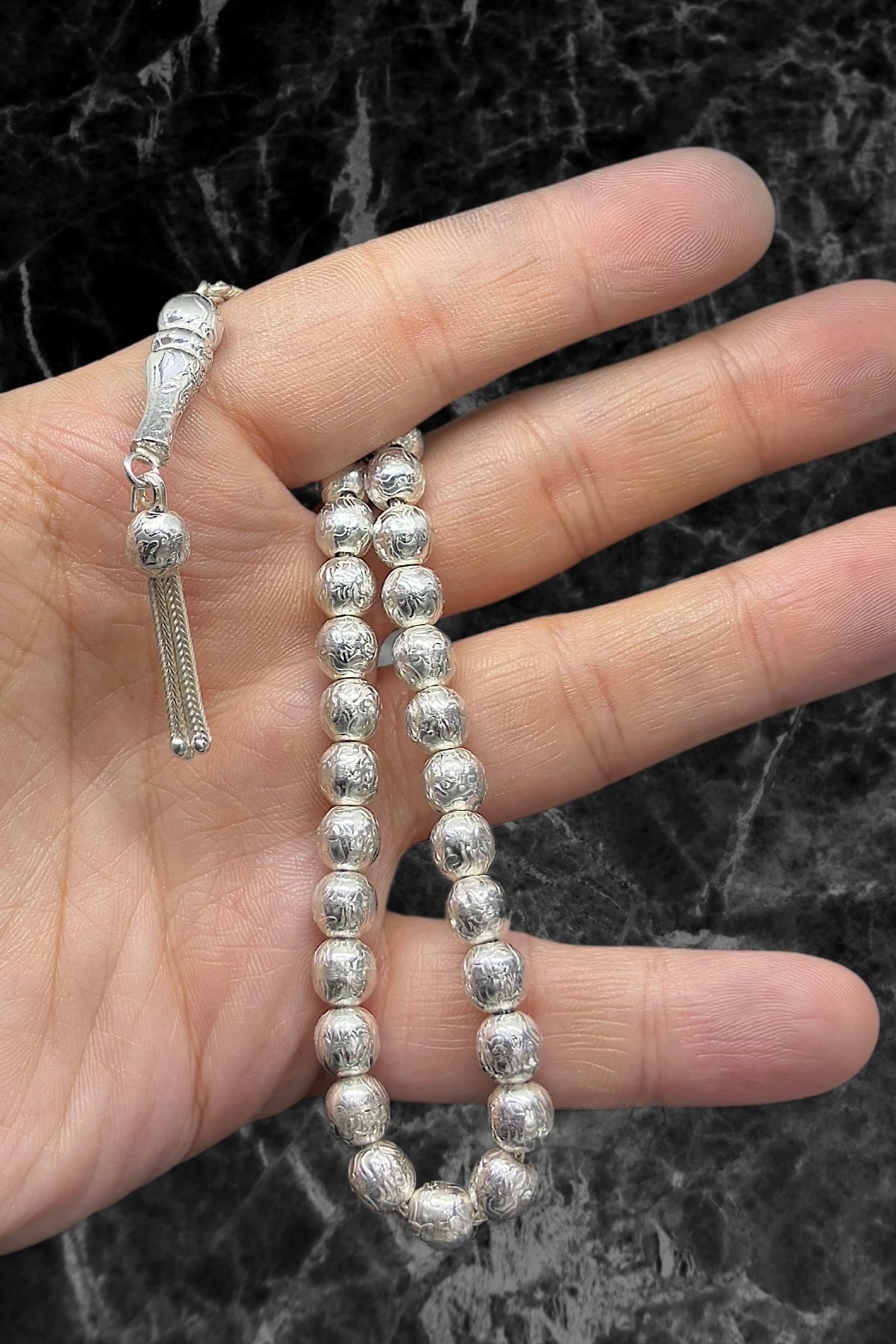oya silver Handcrafted Patterned Silver Rosary features