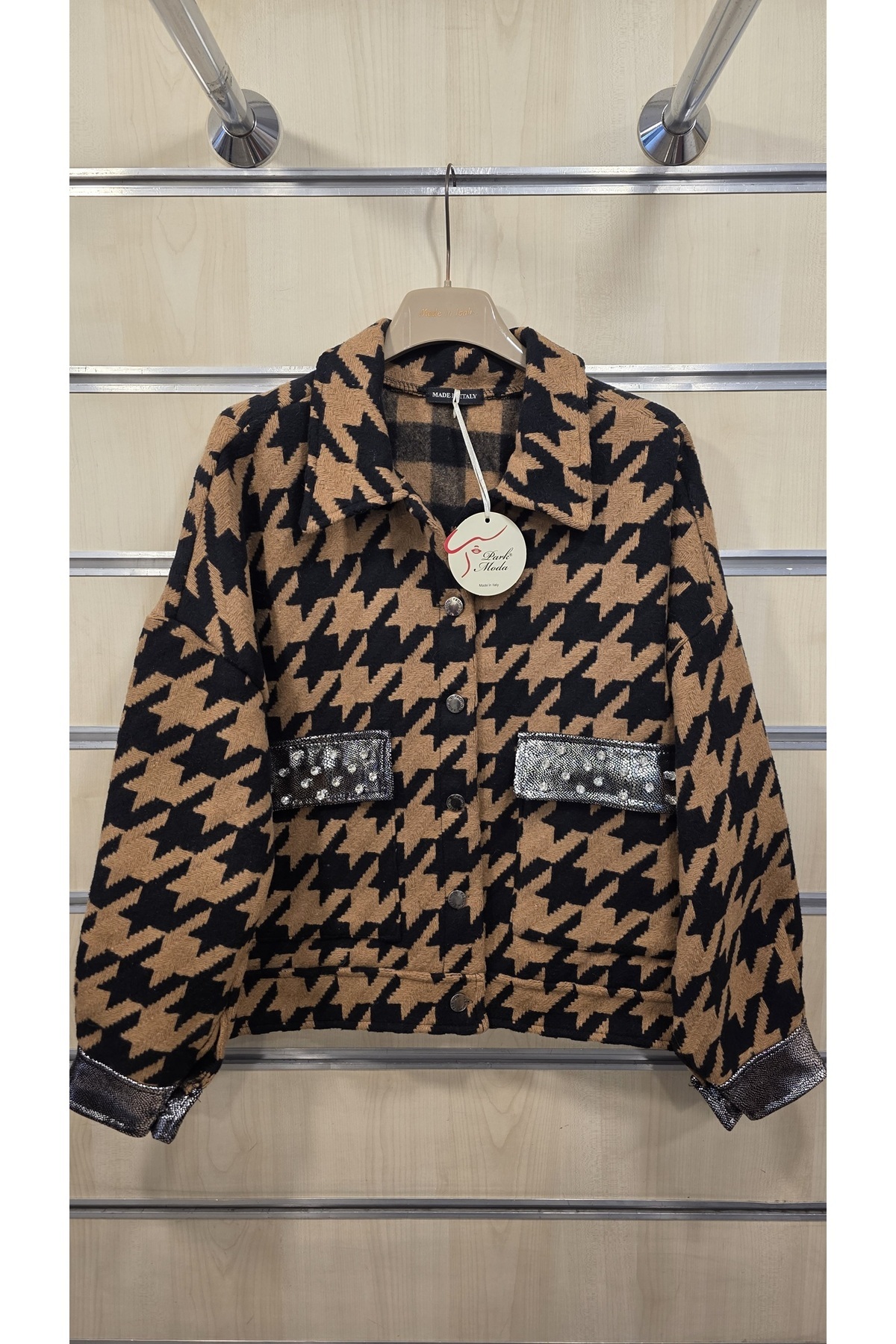 Park Moda Jacket with Houndstooth Pattern and Stone Accessories features