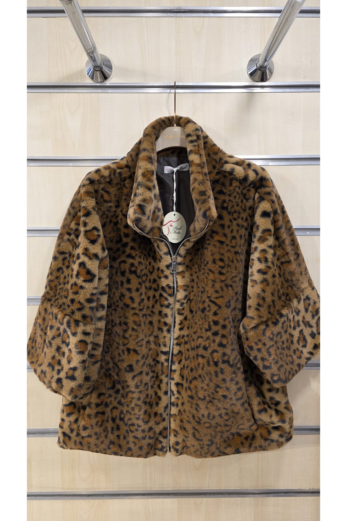 Park Moda Leopard Pattern Plush Jacket features