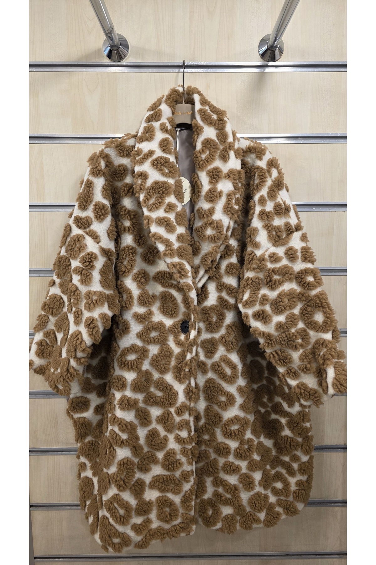 Park Moda Oversized Wool Coat with Embossed Pattern features