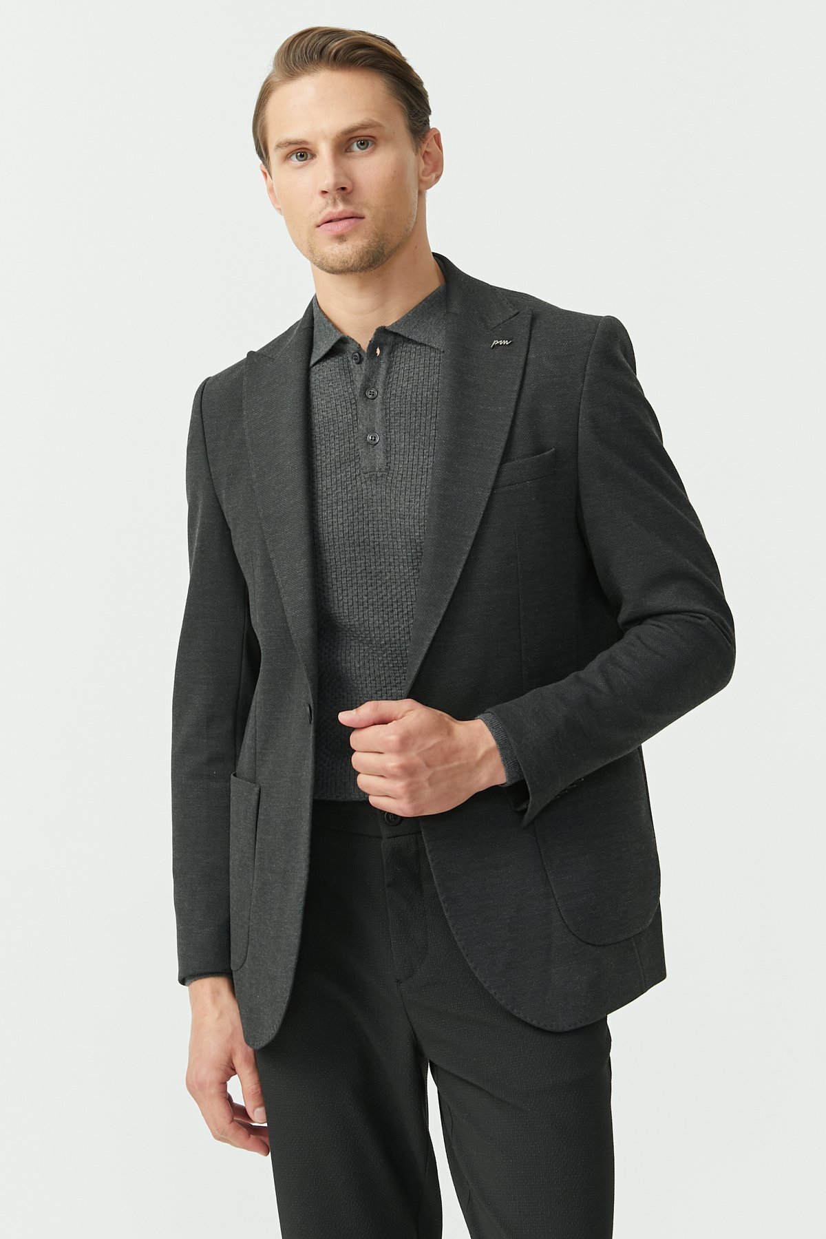 PAULMARK Men's Single Button Mono Collar Jacket features