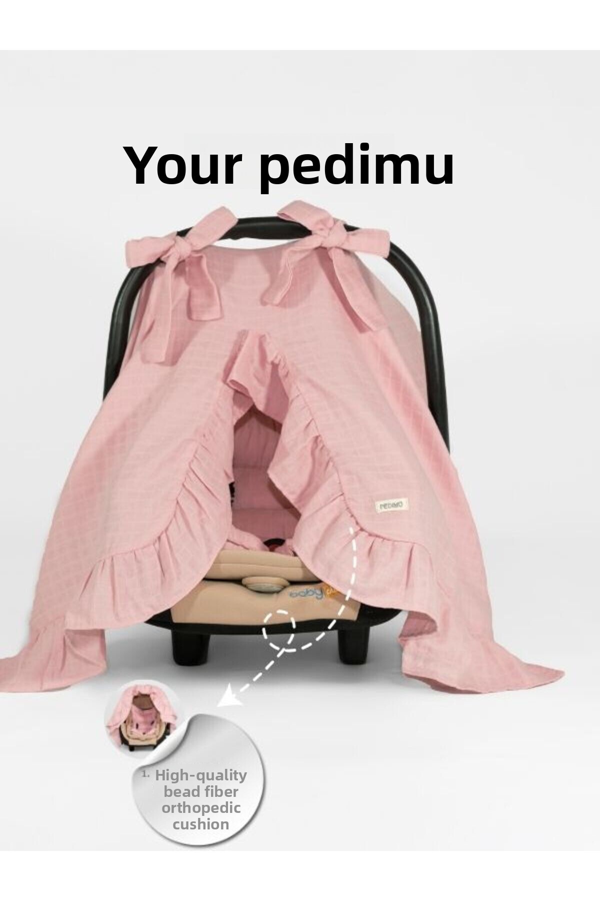 Pedimu Muslin Dusty Rose Color Ruffle Detailed Stroller Cover and Stroller Cushion Set features