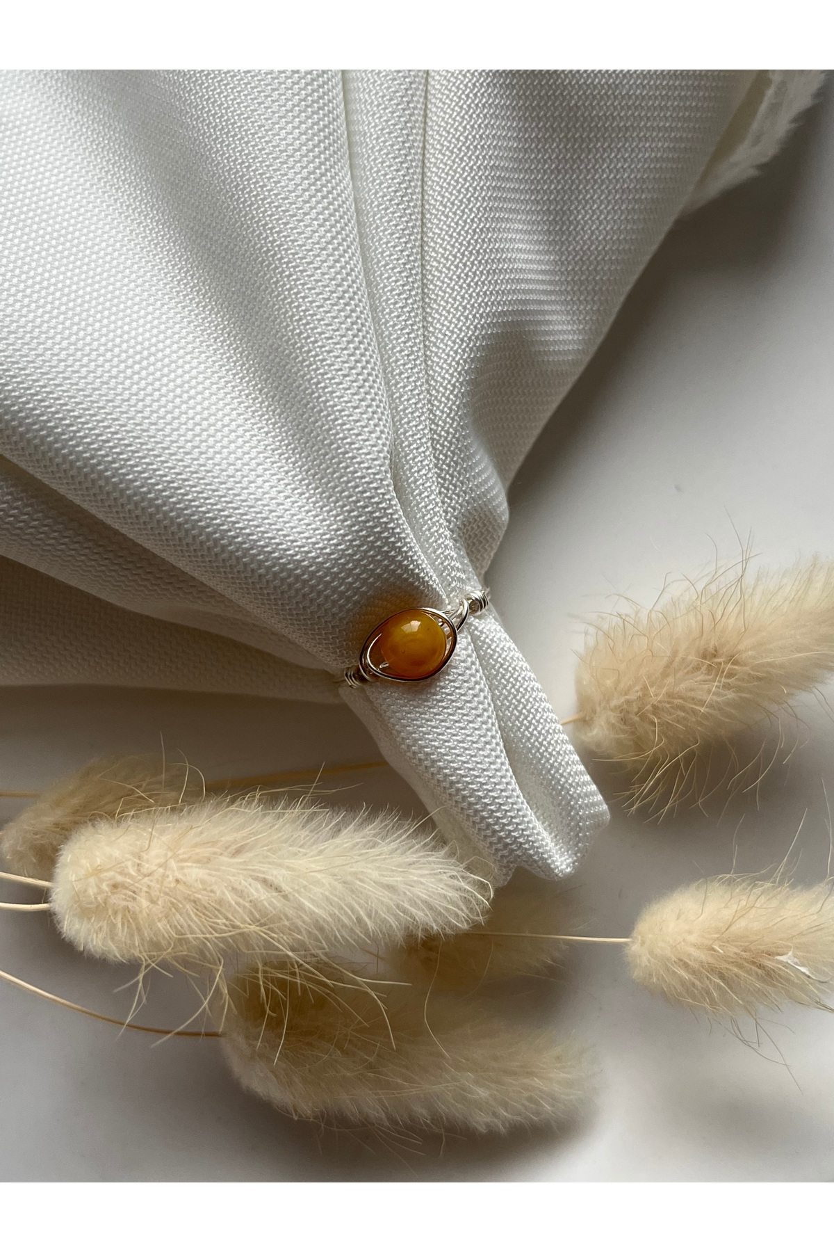 Pel Design Amber Stone Silver Wire Ring features