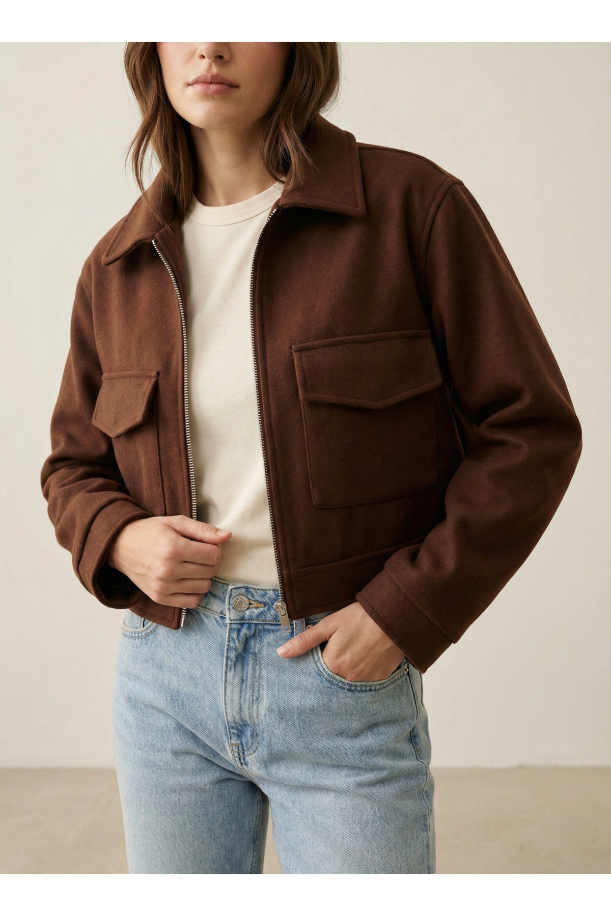 PERADO Soft Lined Cropped Jacket Brown features
