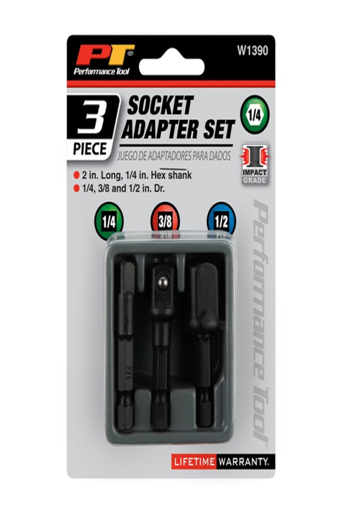 Performance Tool 3-Piece Chrome Vanadium Steel Drill Socket Adapter Set