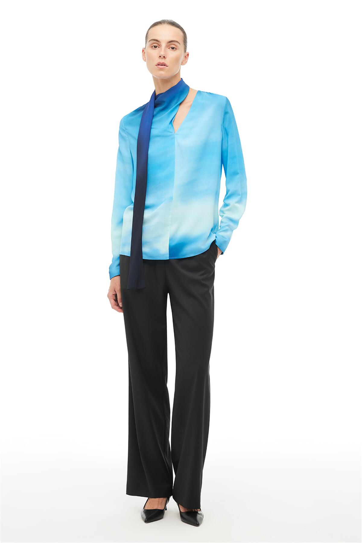 Perspective Multi-Colored Shawl Collar Gradient Blouse features