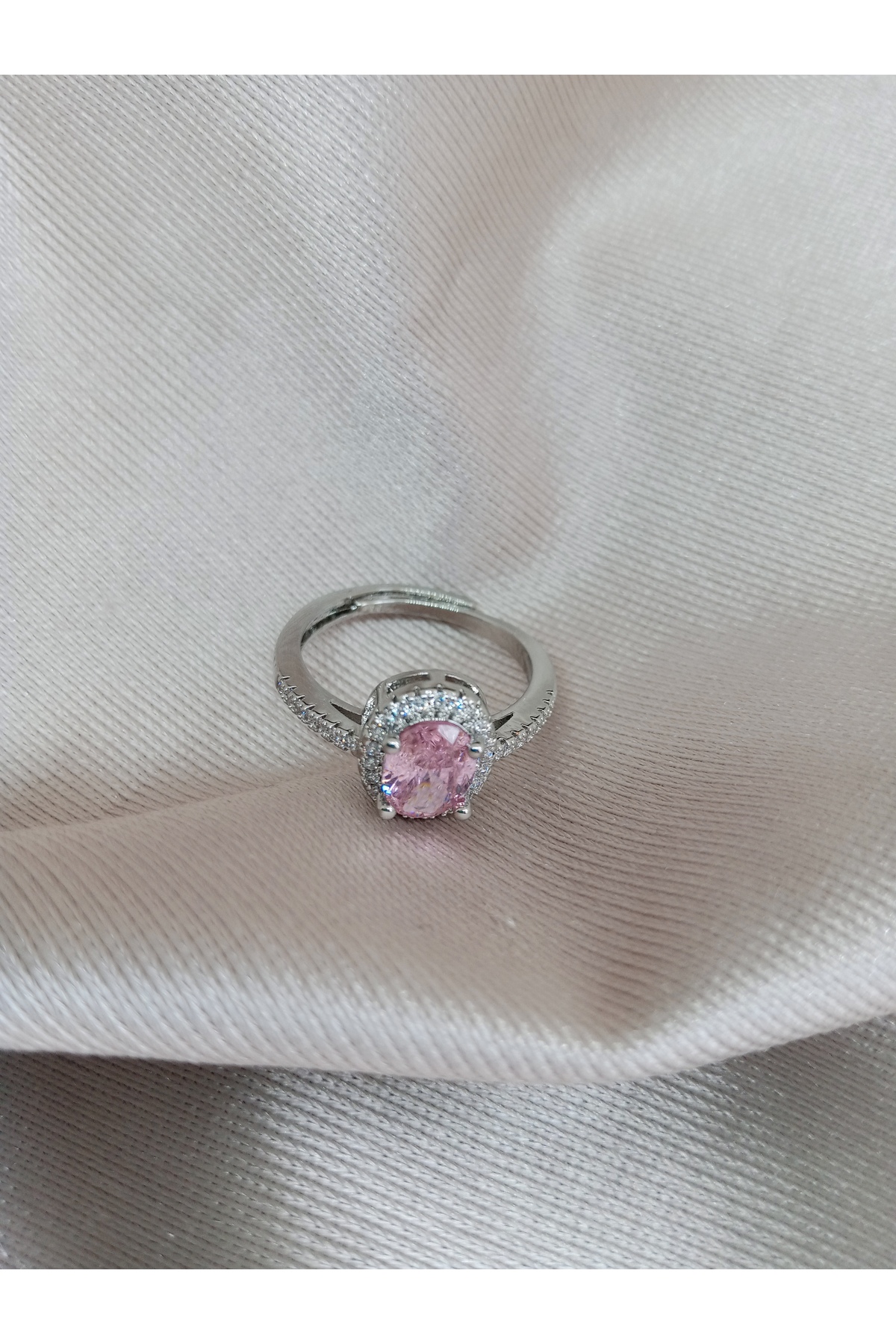 Pervin Ablacım Silver Adjustable Ring with Pink Stone features