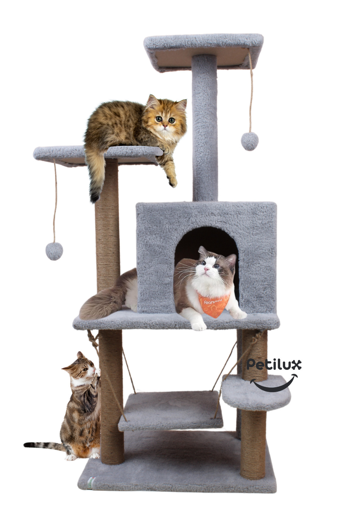 Petilux Jute Drawstring Welsoft Cat House and Play Platform with Swing Nest features