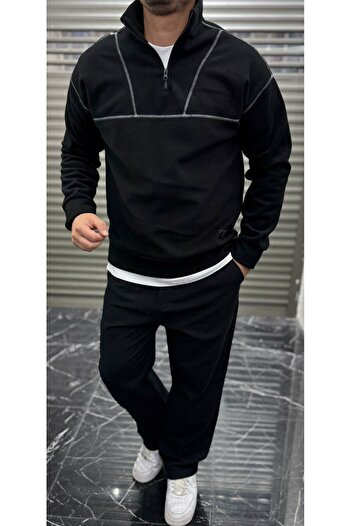 Striped Oversize Half Zipper Fleece Men's Sweatshirt