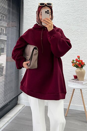 Hooded Oversize Women's Sweatshirt - Burgundy