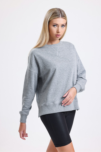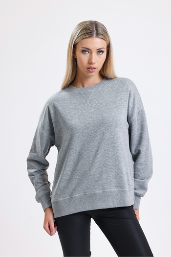 Women's Gray Melange Stitching Detailed Oversize 3 Thread Sweatshirt