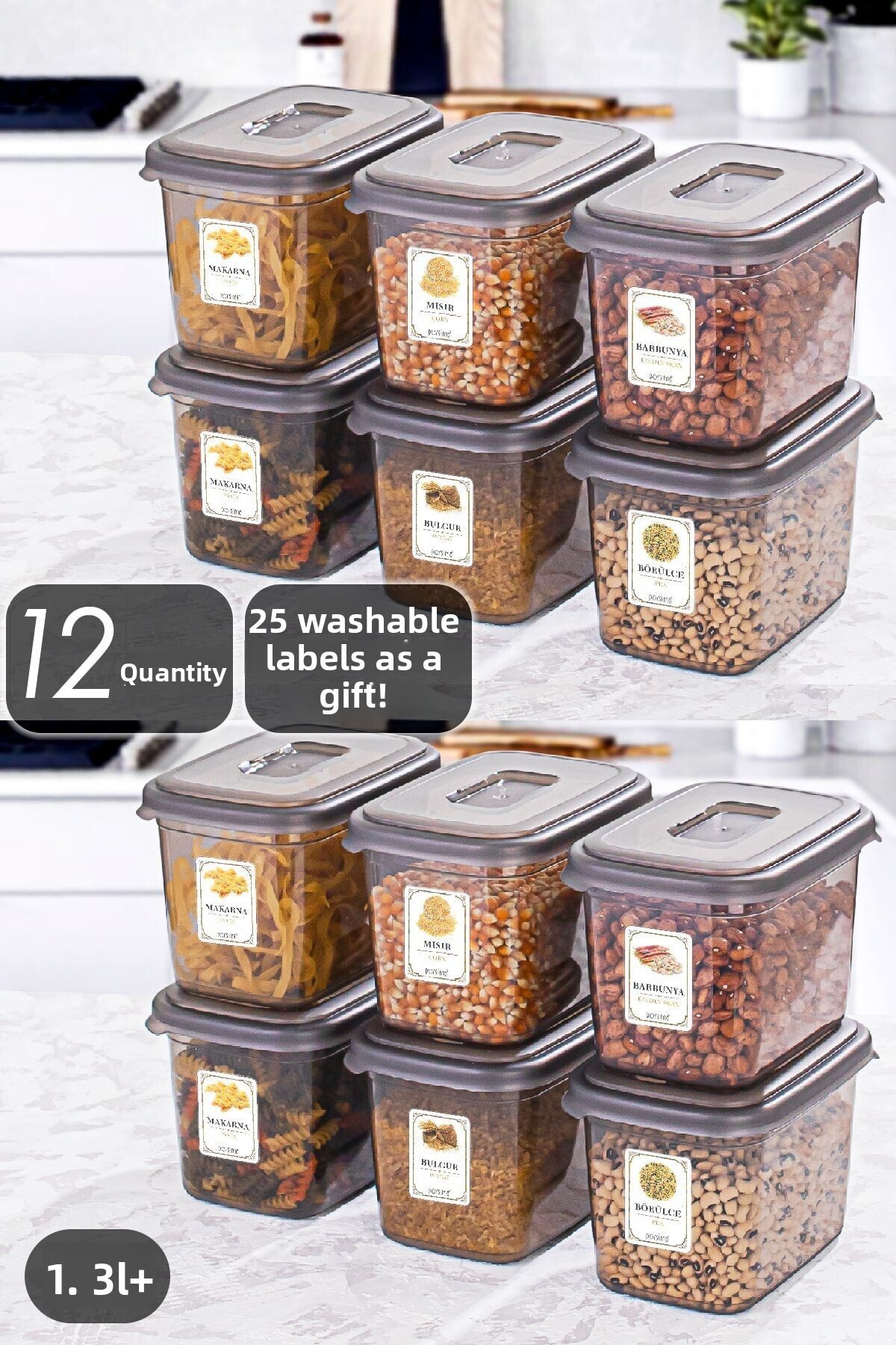 Porsima 1.3 Liter 12-Piece Storage Container with Diamond Label - Pulses Storage Container - Food Storage Container Set features