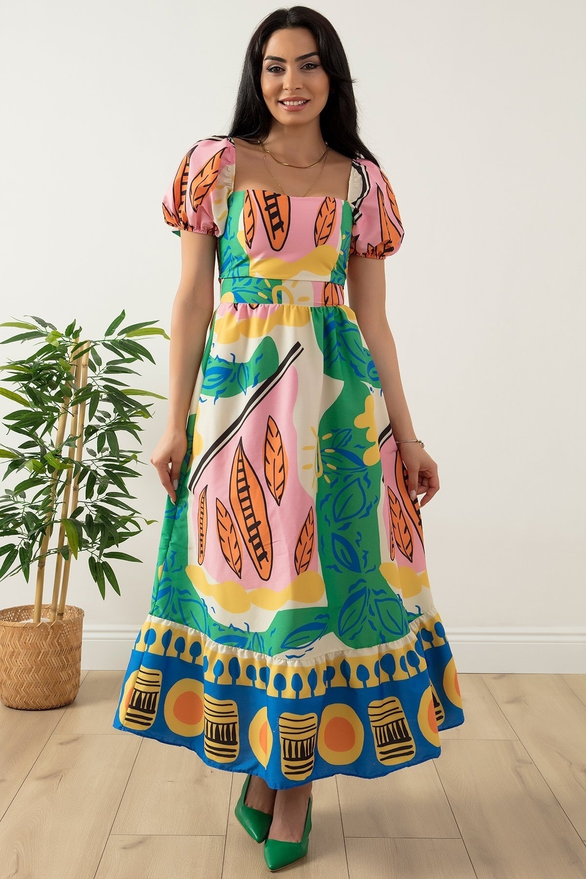 PULLIMM Leaf Patterned Poplin Dress Ny3945 features
