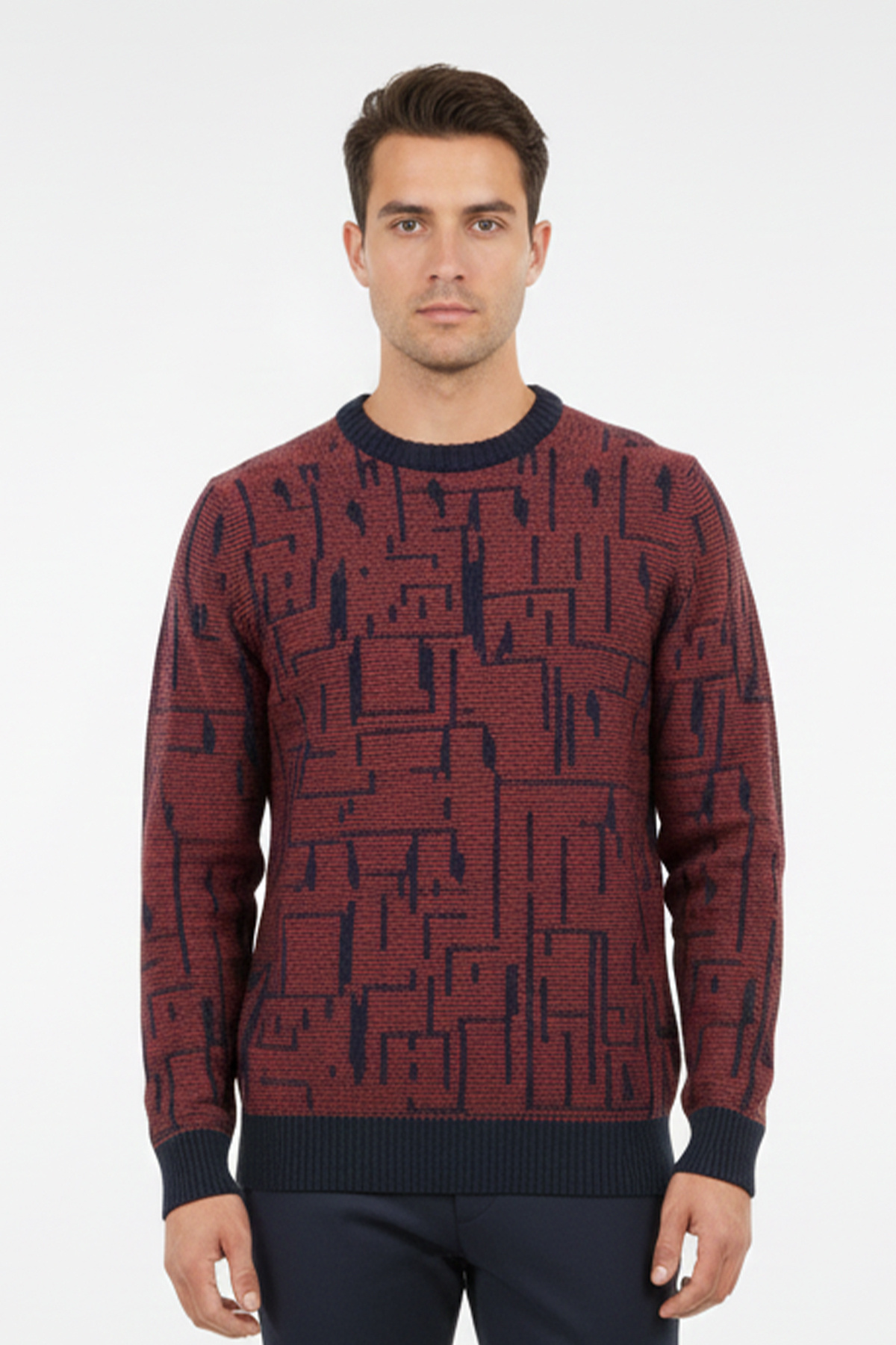 Pulltonic Men's Crew Neck Patterned Soft Sweater features