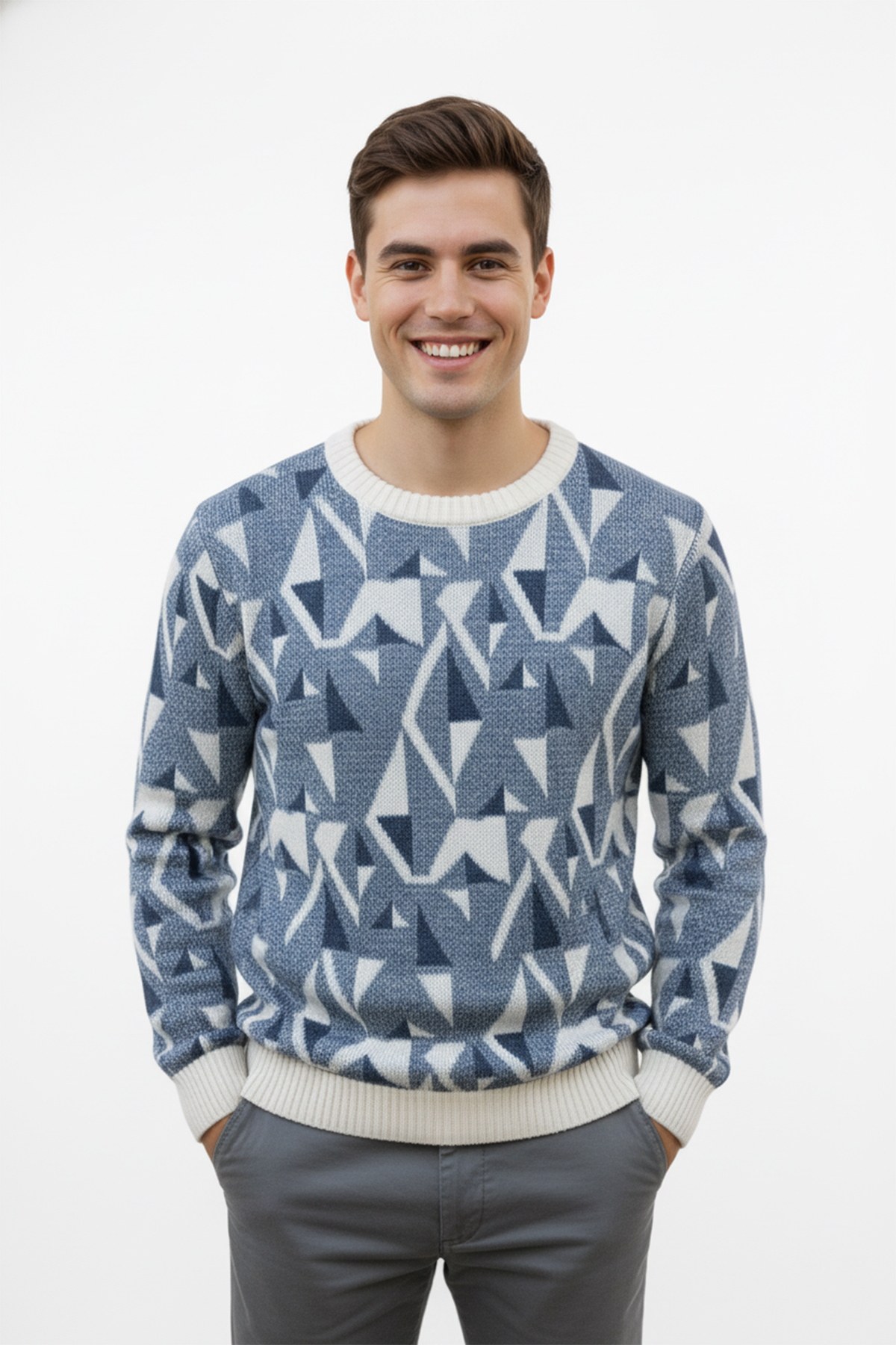 Pulltonic Men's Patterned Crew Neck Sweater features