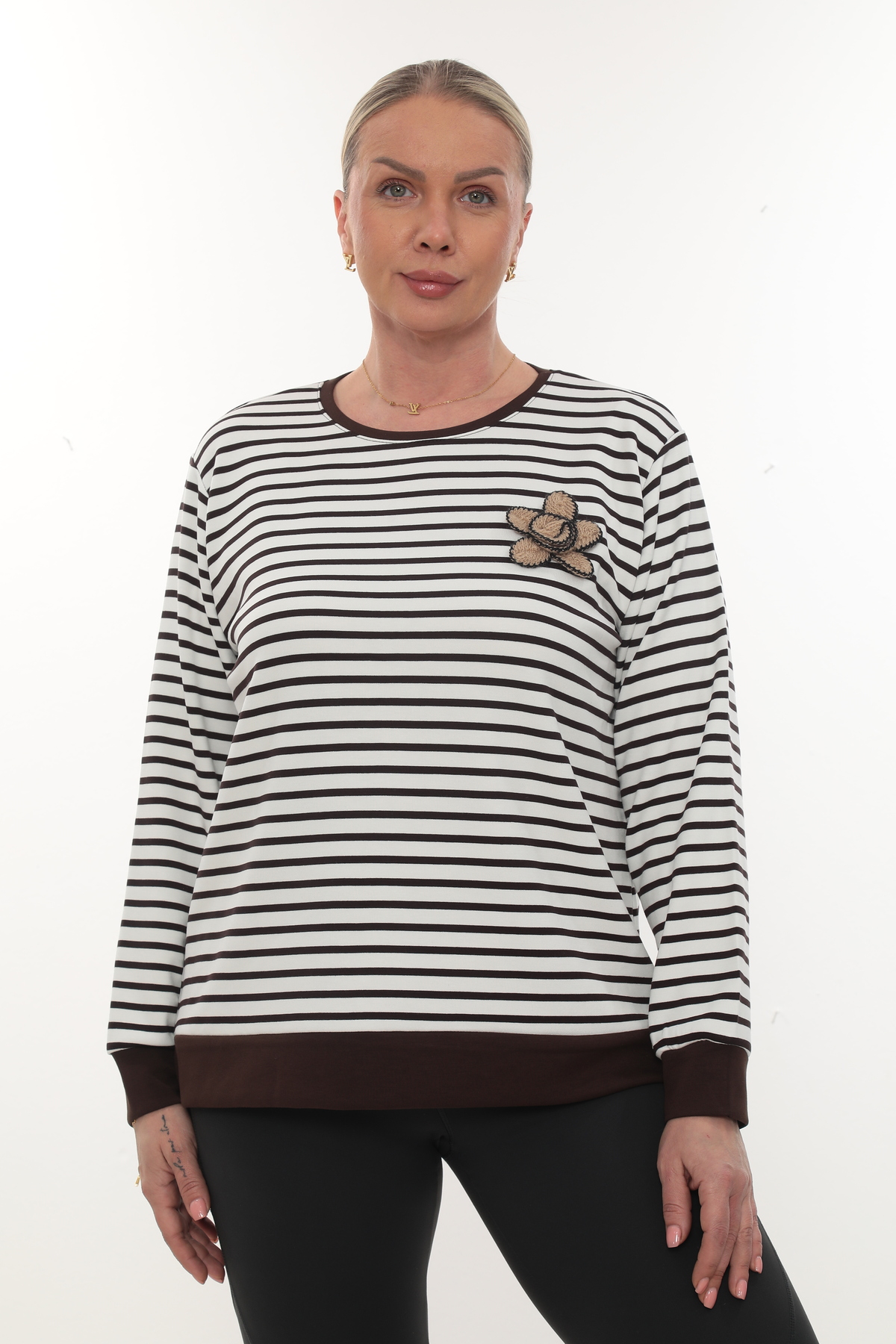 QRUVAZE Plus Size.Striped Modal features