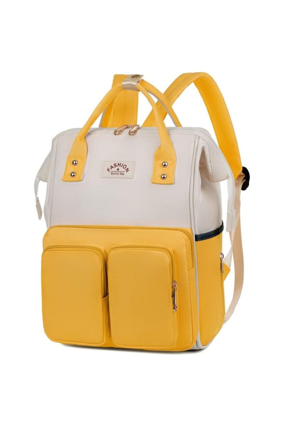 Quasar & Co. Rucsac, Quasar & Co.®, pentru mamici si bebelusi, compartimentat, textil, 37x27x16 cm, galben-alb