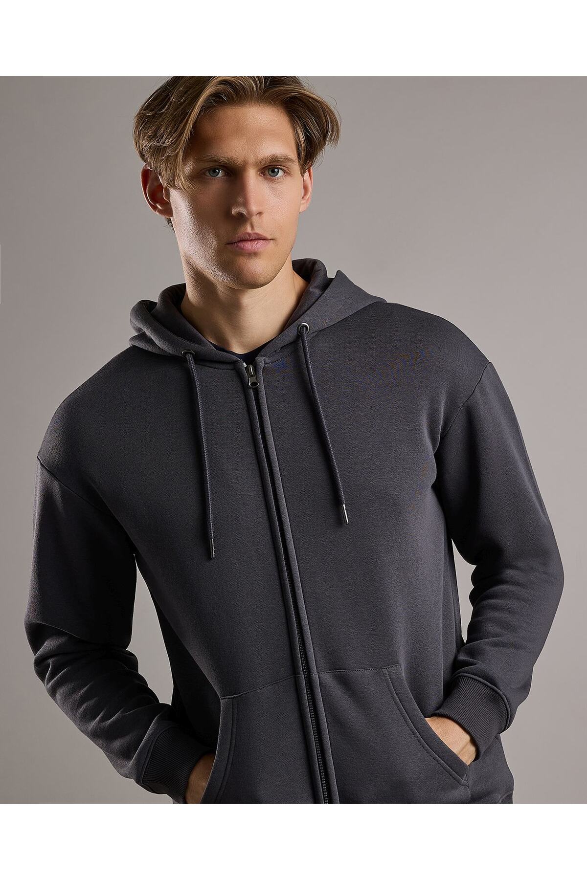 R&B Solid Hooded Jacket with Zipper Closure features
