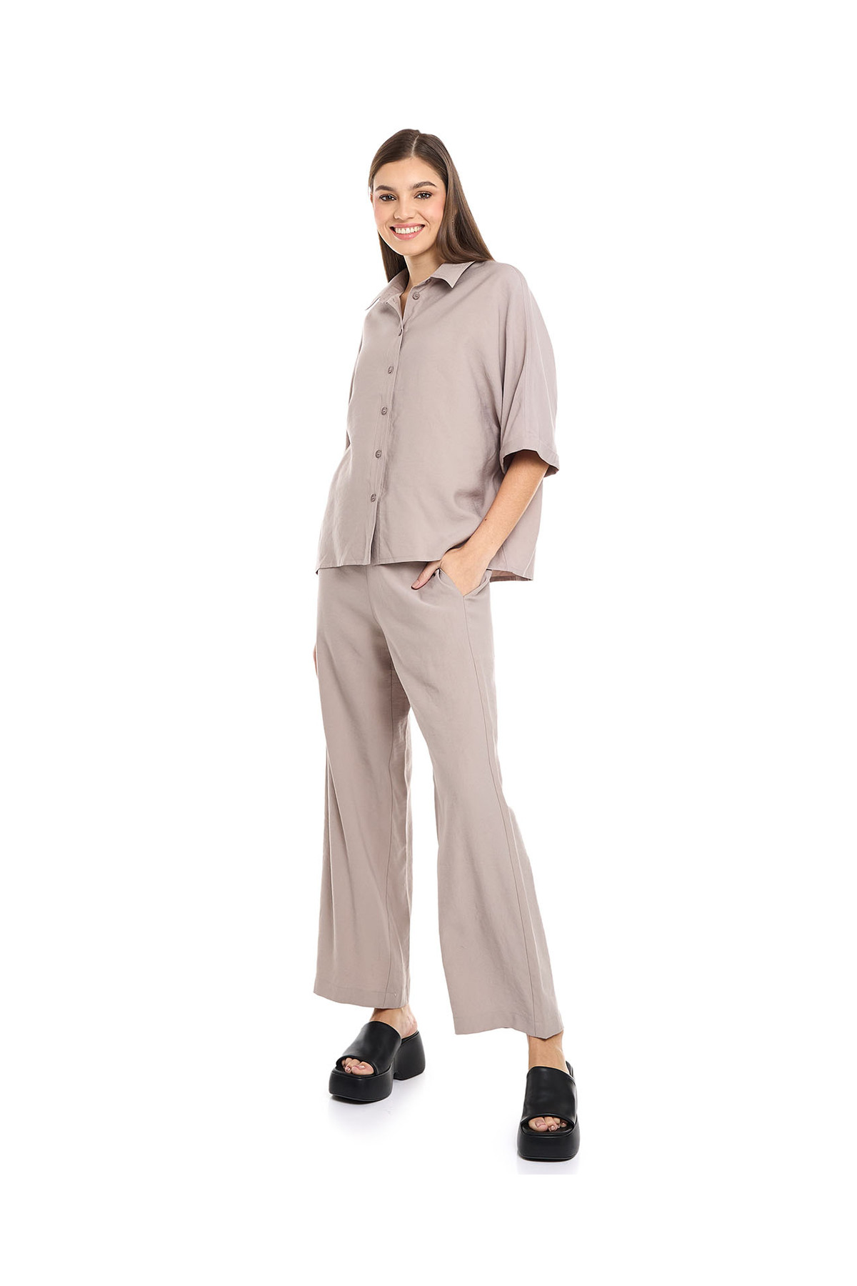 R&B Solid Wide Leg Pants with Drawstring Waist features