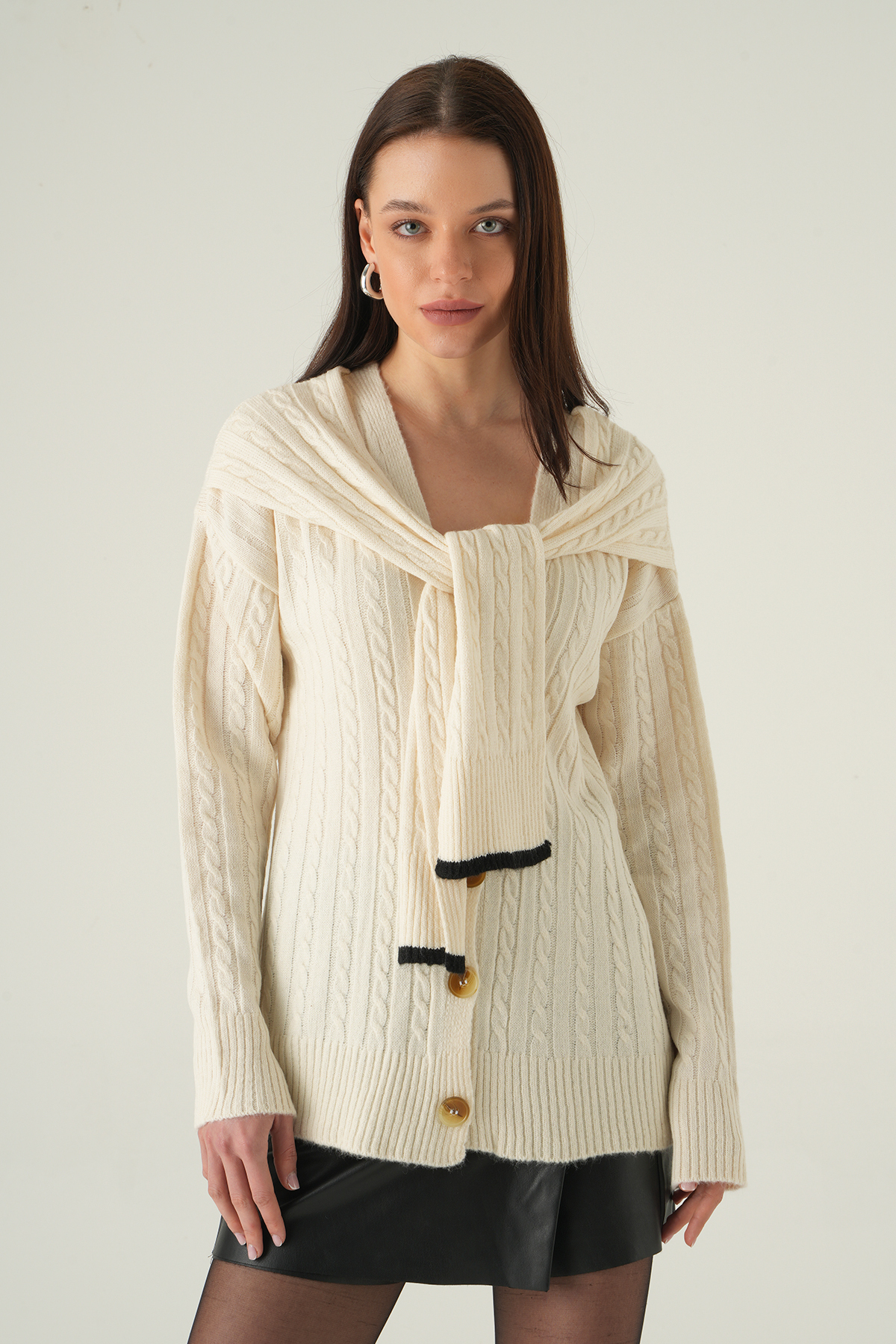 Rays Buttoned Knitted Cardigan Ecru 2470