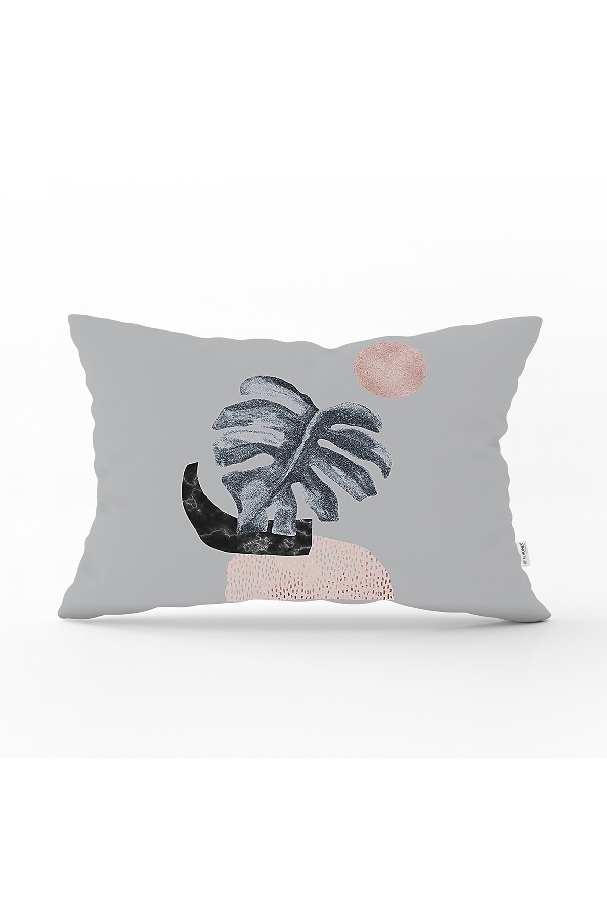 Realhomes Tropical Leaf Pattern Printed Rectangular Pillow Case on Gray Background features