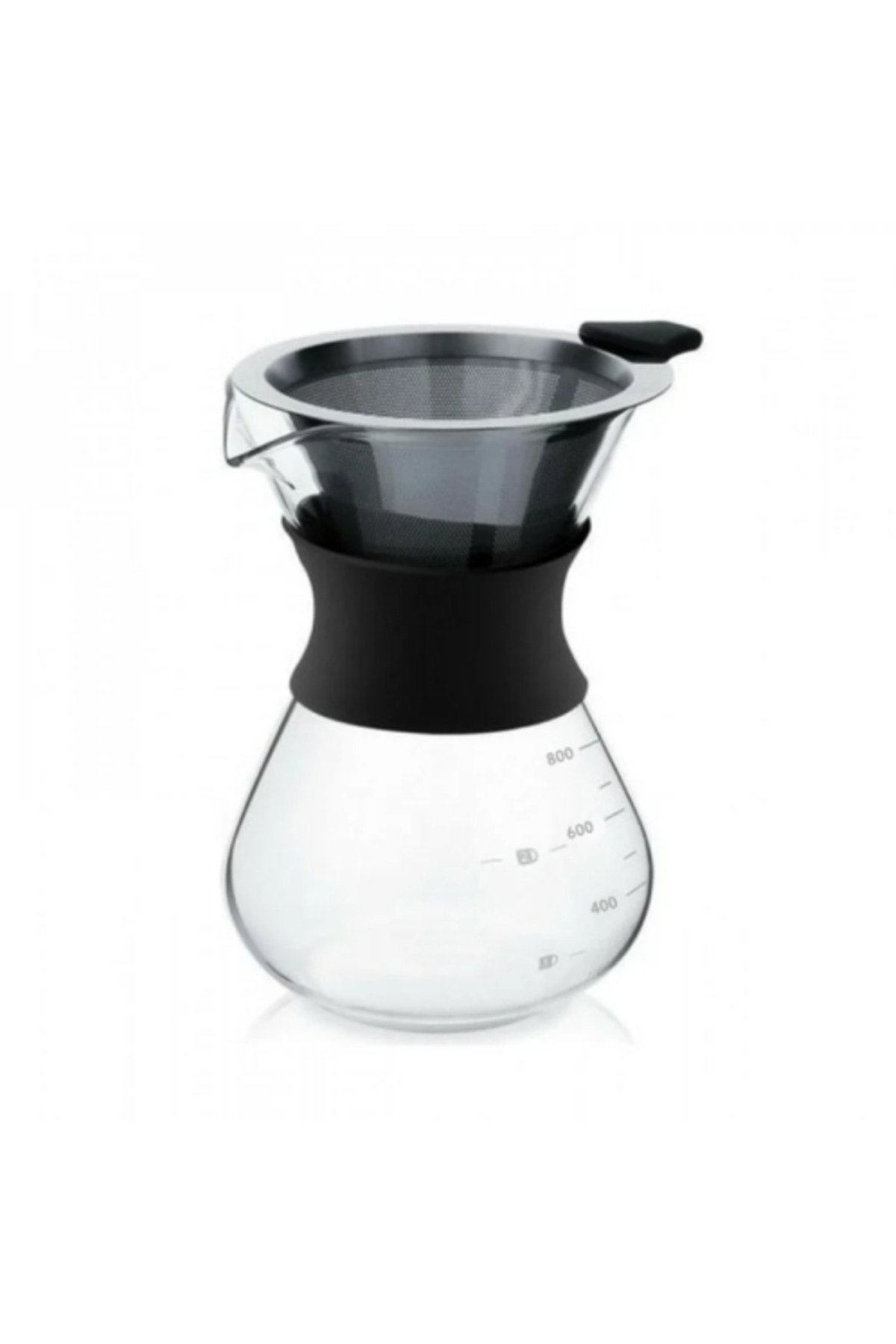 Heat-insulating silicone design, stainless steel filter, and durable borosilicate glass