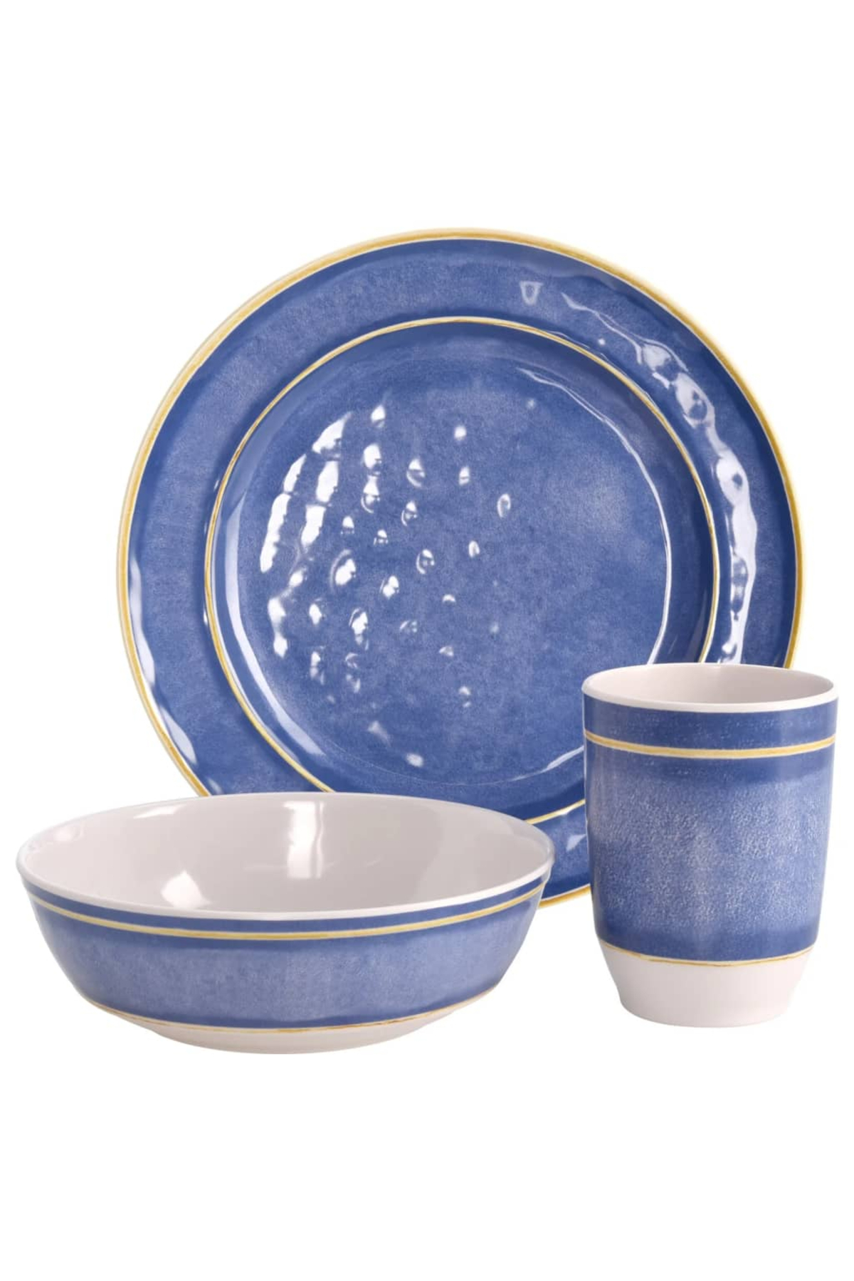 Redcliffs melamine dinnerware set, 12 pieces, blue features