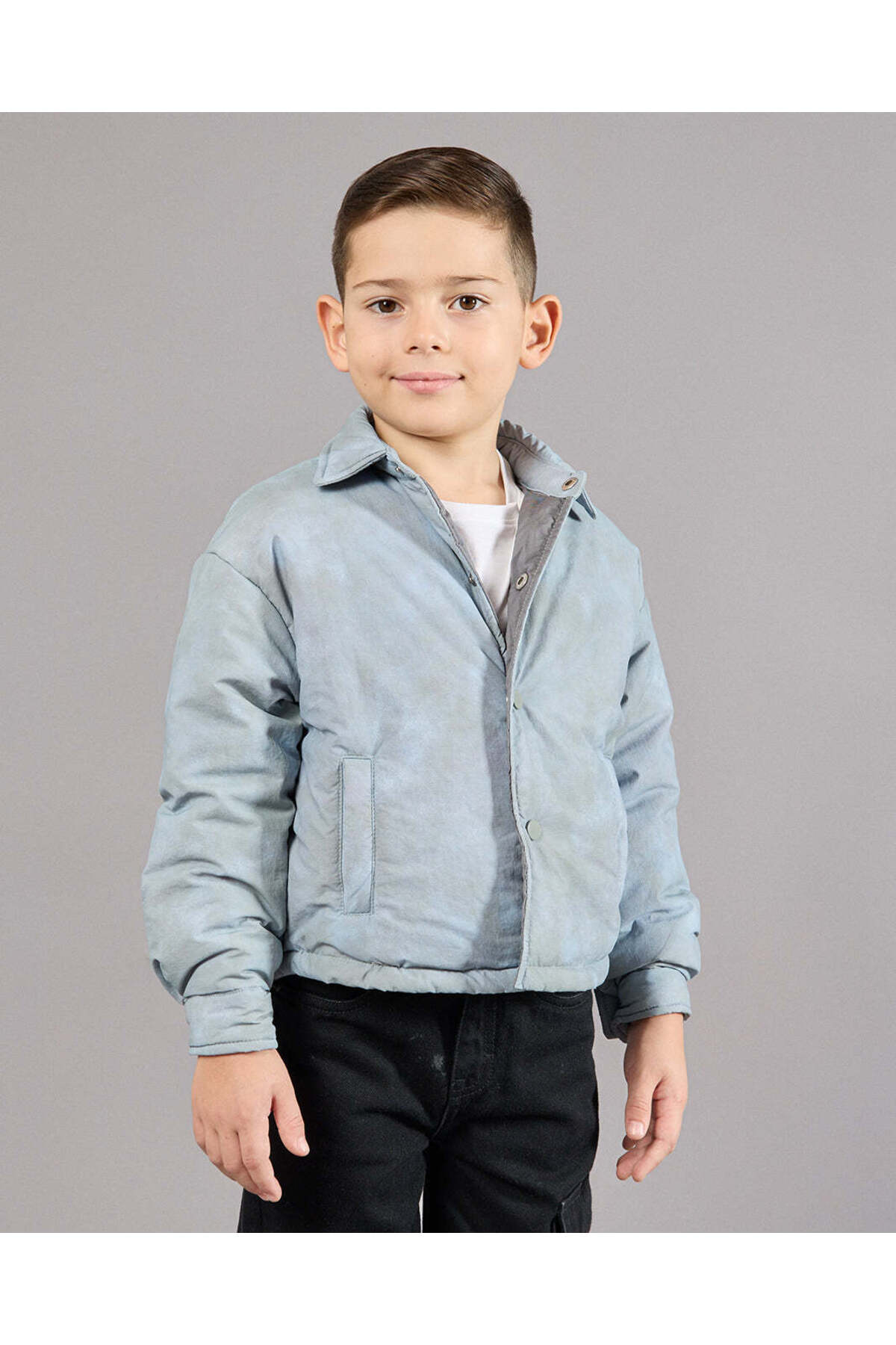 REDTAG Boys Grey Collared Jacket features