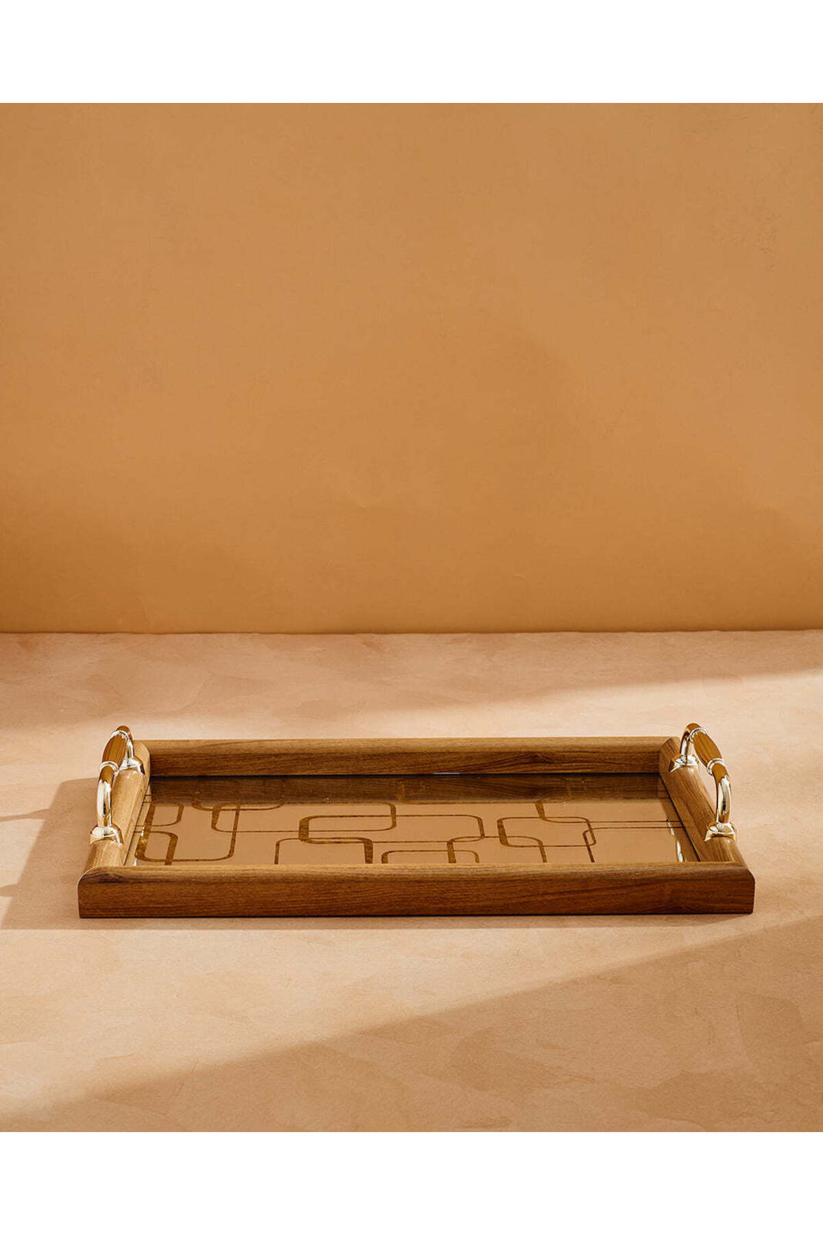 REDTAG Gold Medium Rectangular Geometric Serving Tray features