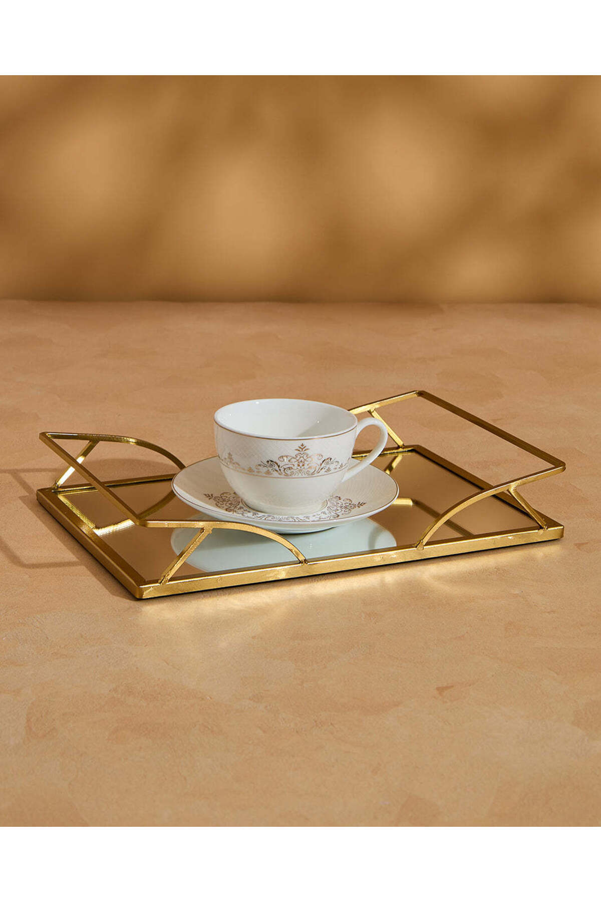 REDTAG Gold Rectangular Decorative Mirror Tray features