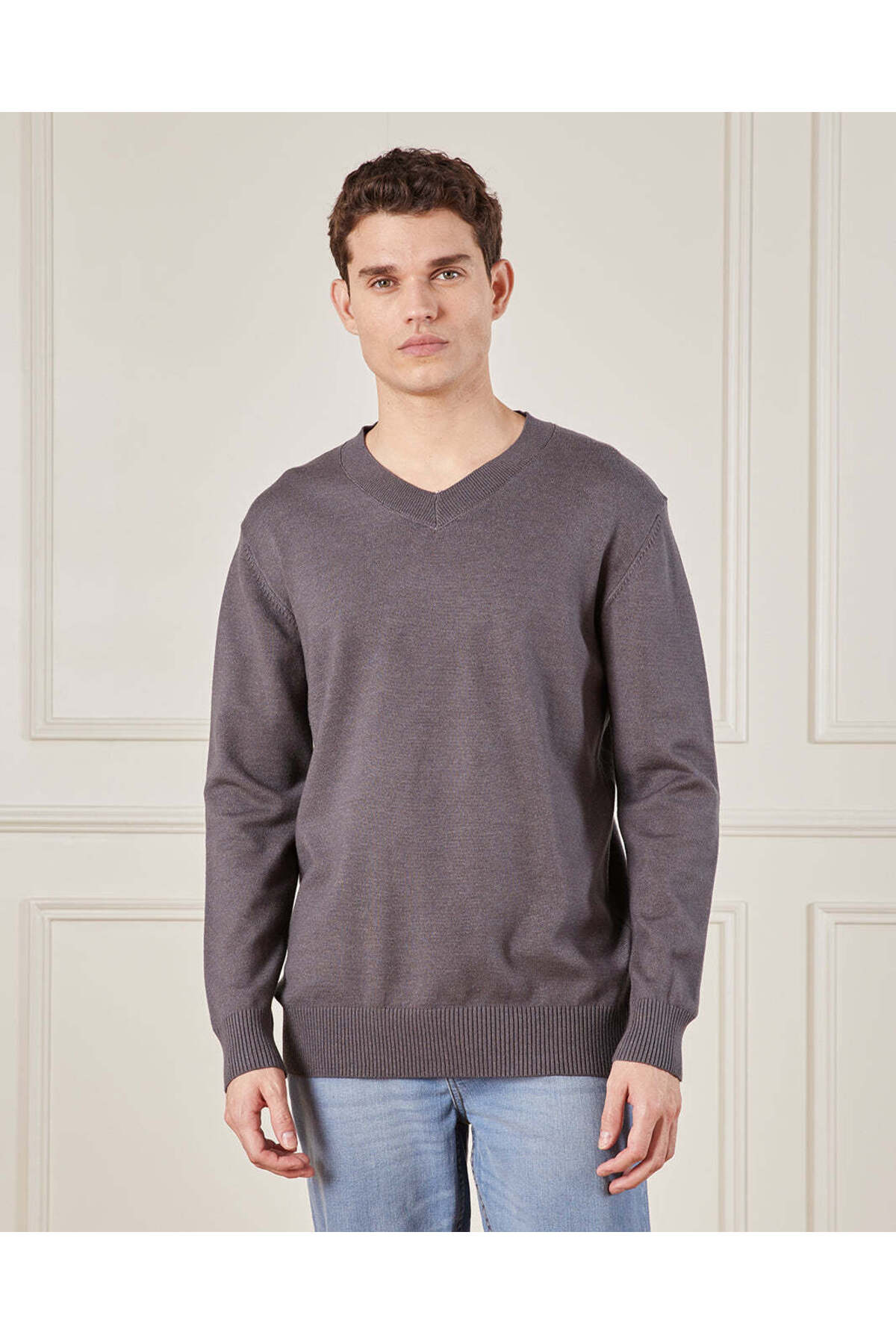 REDTAG Men Charcoal Solid Sweater features