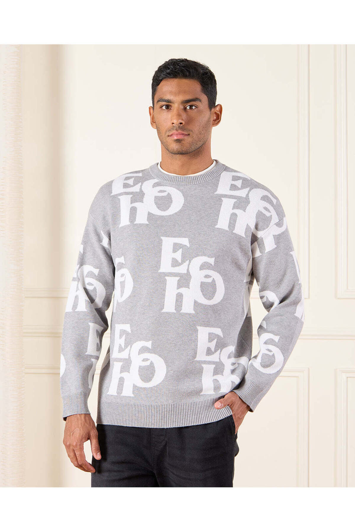 REDTAG Men Grey Knitted Pullover features
