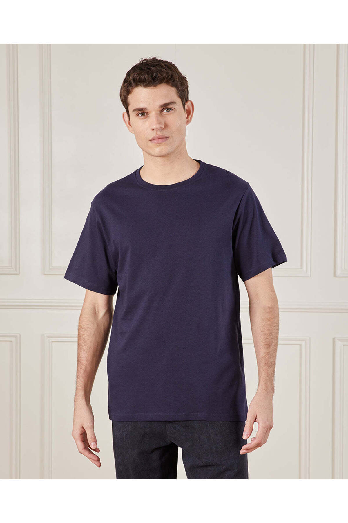REDTAG Men Navy Basic Solid T-Shirt features